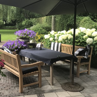 Sinds wij het tuinset en parasol van AVH in de tuin hebben staan is het buiten zitten stuk...