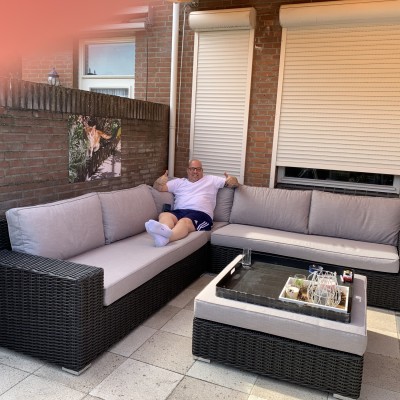 De vakantie gaat niet door en mijn man en ik hebben ons zelf getrakteerd op een heerlijke, mooie, luxe lounge set voor ons favoriete hoekje.