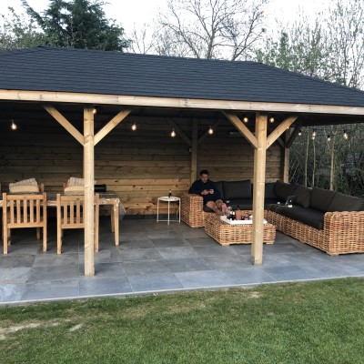 Onze overkapping eindelijk helemaal af met de Avh Ibiza tuinset. Laat de Zomer maar kome...