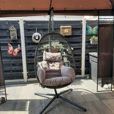 Naast de loungeset ook een hangend zit-ei 🥚gekocht. Kwam in 1 doos, zo makkelijk. Zit f...
