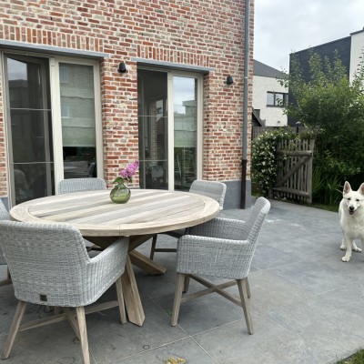 Een blik op ons terras met het loungeset en ons nieuwe tuinset van 4 Seasons. Prachtig ...