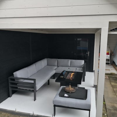 Helemaal blij met onze loungeset, lekker lang buiten genieten met de warmte van de vuurtaf...