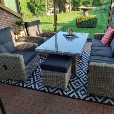 Wat een prachtige loungeset en hij zit heerlijk. Tafel is goed hoogte zodat wij ook heerli...