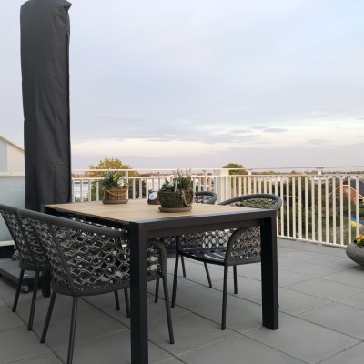 Op een balkon in Zandvoort voor borrel of diner, een ideale oplossing met de in hoogte ver...