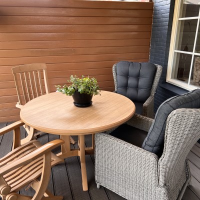 De tafel, de grote stoelen en het ronde teak tafeltje #avhfotowedstrijd